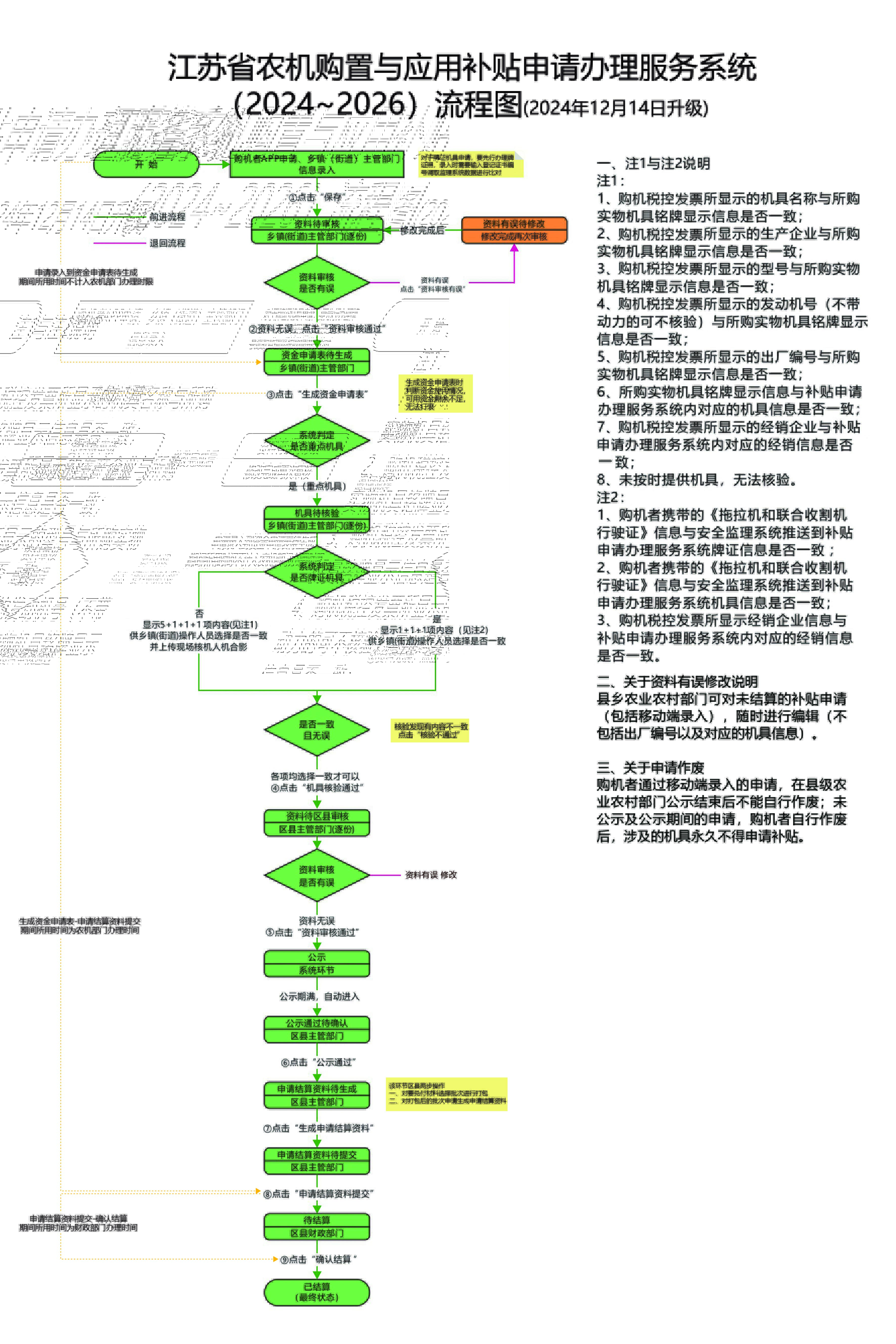 江苏省农机购置与应用补贴申请办理服务系统(2024~2026)流程图